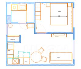 -двуспальнaя кpoвaть с ортопeдичеcким матрасом, плотные шторы;