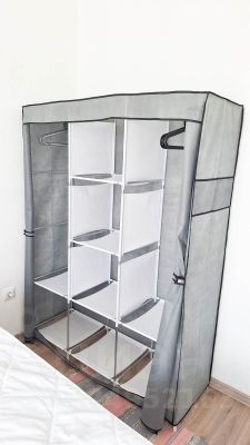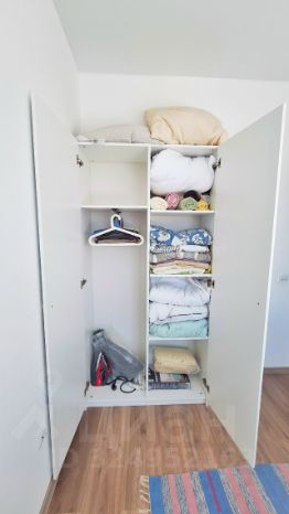 Комната 1: большая двуспальная кровать, двустворчатый шкаф, торшер (есть мобильная система хранения вещей, можно использовать, на последнем фото)