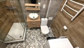 В квартире выполнен качественный евроремонт, что создаёт атмосферу комфорта и уюта. На кухне и в комнате есть необходимая мебель, а также современная техника: холодильник и стиральная машина. Санузел совмещённый и оборудован душевой кабиной.