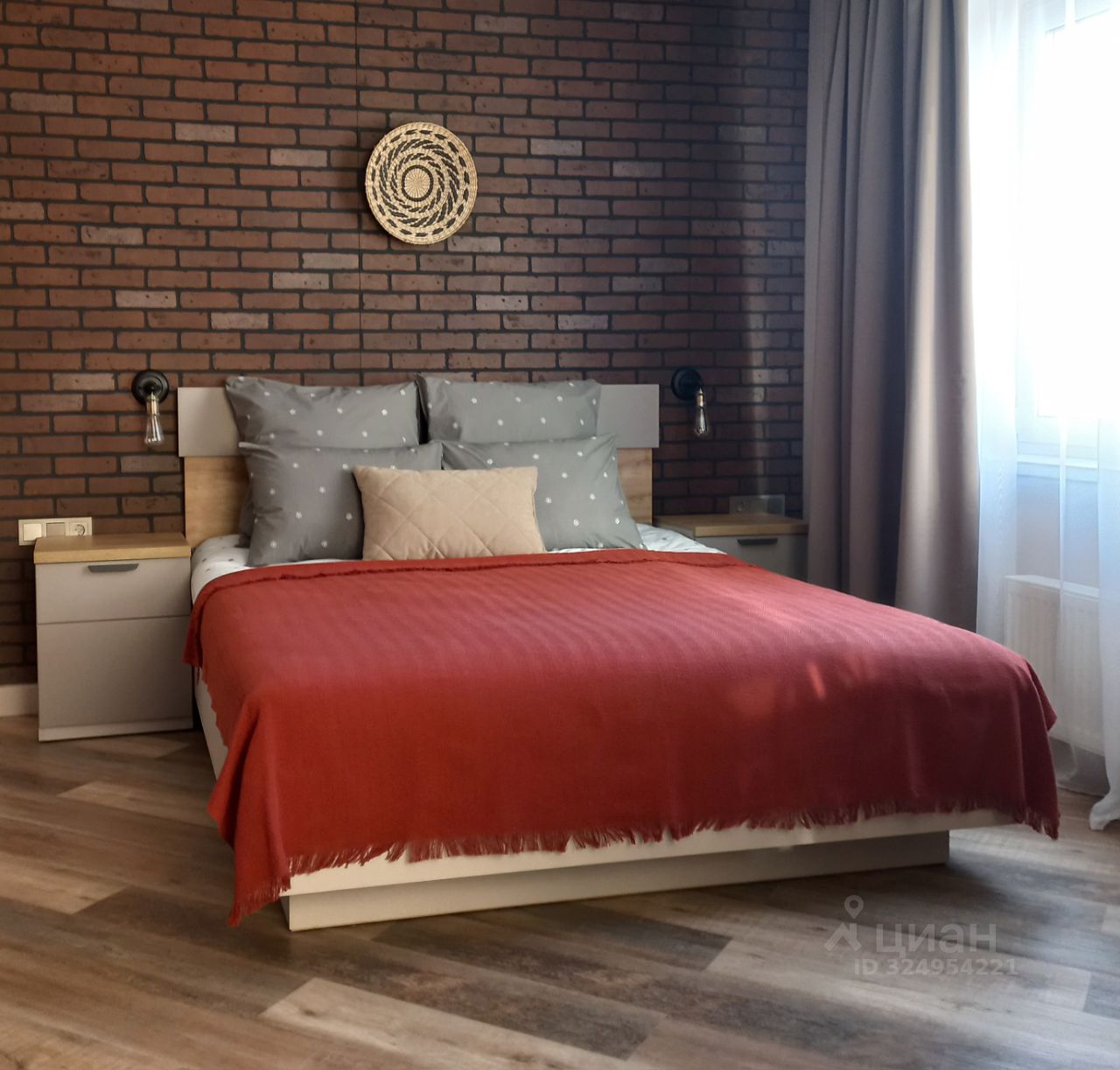 Двуспальная кровать (160х200), диван (120х200), постельное бельё, шторы блэк-аут, полотенца, фен, утюг, гладильная доска, сушилка для белья.