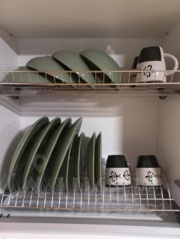 Кухня: микроволновка, чайник, варочная панель, мини-холодильник, посуда, фильтр питьевой воды.