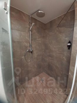 Просторная душевая с тропическим душем, стиральная машина.