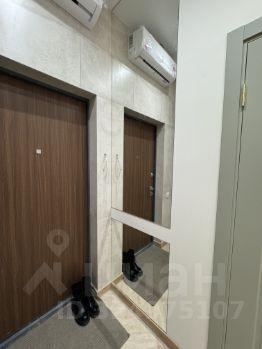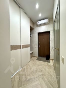 В коридоре большая система хранения для вещей, удачное расположение кондиционера, которое обеспечивает свое действие на всю квартиру.