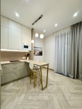Полностью оборудованная кухня: есть встраиваемый двухкамерный холодильник - Exiteq, электрическая варочная панель - Maunfeld, встраиваемая микроволновая печь СВЧ - Zugel, встраиваемая посудомоечная машина - Scandilux, также предусмотрена большая система хранения с шкафами под потолок.