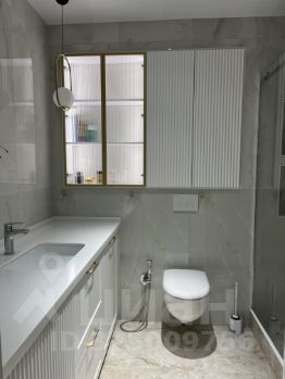 Квартира полностью оснащена импортной бытовой техникой (варочная панель, духовой шкаф, холодильник, стиральная машина, вытяжка, кондиционер 9 тепло-холод), подключен интернет. Имеется отдельная вместительная гардеробная с системой хранения Titan.