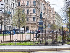 Квартира находится на 5 этаже шестиэтажного дома с лифтом. Дом является памятником архитектуры. Окна выходят на небольшую площадь-сквер, в центре площади памятник А. С Пушкину. Вход с улицы. В подъезде - установлено видеонаблюдение и дежурит консьерж. Отреставрированная парадная с основными элементами декора XIX века - лепкой, фонариками, арками. Двор закрывается.