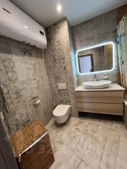 В ванной комнате установлен водонагреватель для всей квартиры, стирально-сушильная машина.