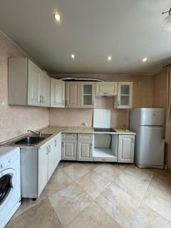 Большая просторная кухня, застекленная лоджия, встроенный шкаф для одежды, просторная комната.
