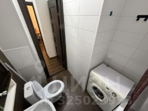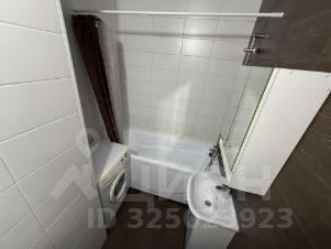 Стиральная машинка, ванная, шкафчики над и под раковиной