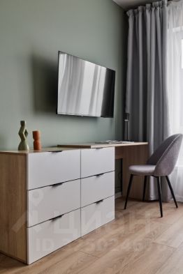 Кухня укомплектована холодильником, посудомоечной машиной, варочной панелью, духовым шкафом, вытяжкой, установлен диван (дополнительное спальное место), телевизор, кондиционер. Организована рабочая зона!