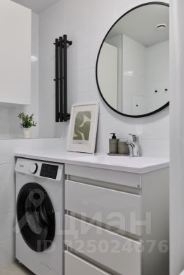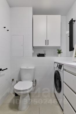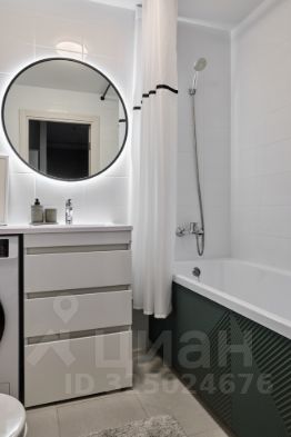 В ванной комнате полноценная ванна, стиральная машина, организованы места хранения.