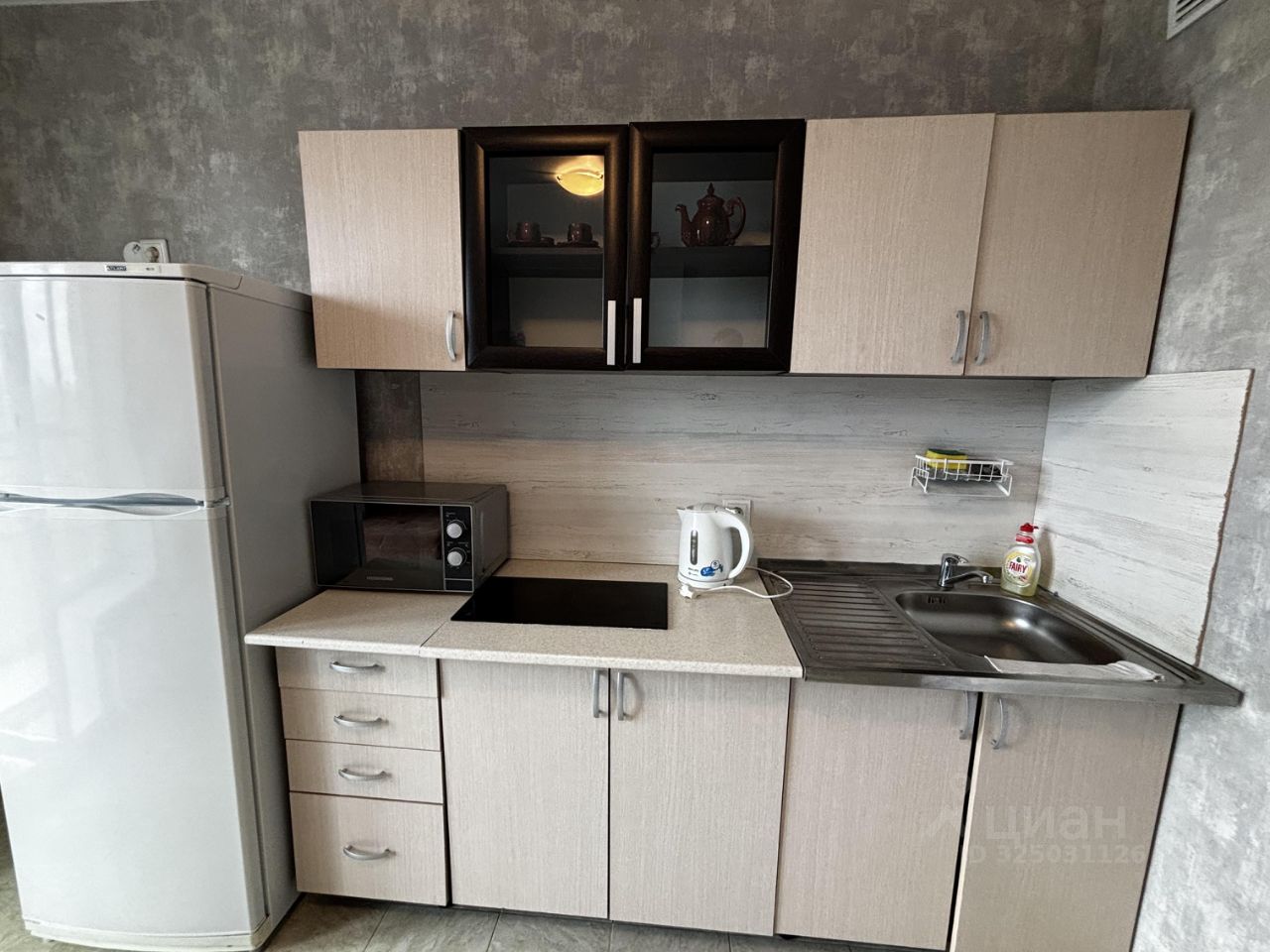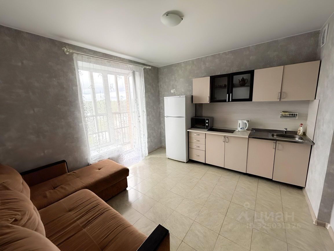 Просторная , светлая кухня с выходом на панорамную лоджию- оснащена необходимой бытовой техникой, включая холодильник и микроволновую печь.