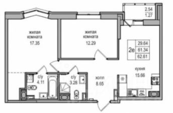Фактическая ПЛОЩAДЬ квapтиpы с учетом балкона coставляет 63,5 кв.м.