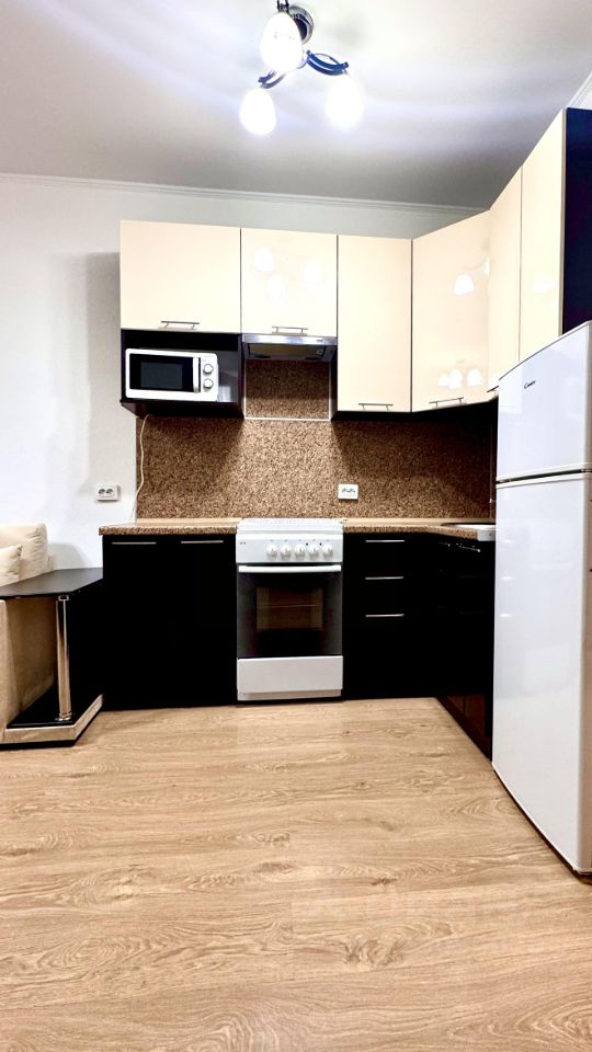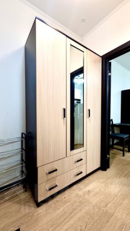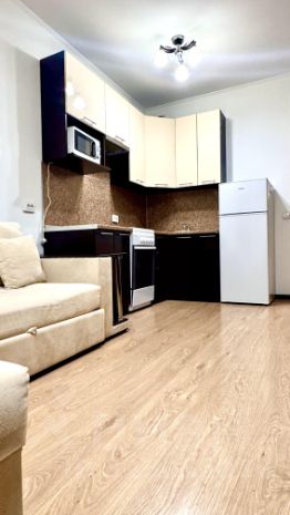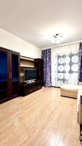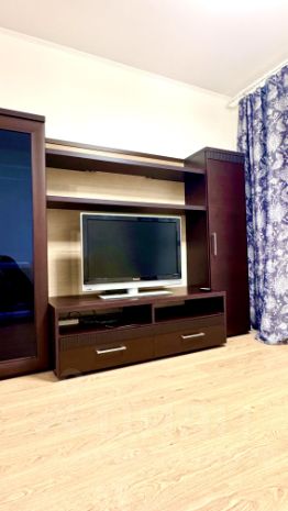 Квартира полностью меблирована, есть все необходимое: кухонный гарнитур, электрическая плита, микроволновая печь, вытяжка, холодильник, мебельная стенка, телевизор, диван, стол со стульями, шкаф в прихожей и встроенный шкаф-купе на балконе.