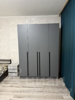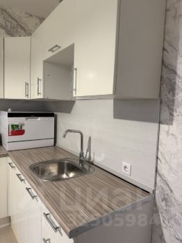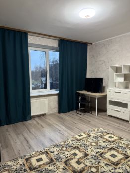 Кухня оснащена необходимой бытовой техникой, включая холодильник, плиту и микроволновку, посудомоечную машину. В комнате установлен удобный шкаф и письменный стол, что делает пространство функциональным и комфортным для работы или учебы.
