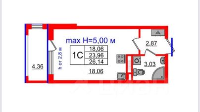 Сдается уютная студия с евроремонтом на 4 этаже 4-этажного дома. Общая площадь квартиры составляет 24 кв. м, а высота потолков — впечатляющие 5 метров. Из окон открывается вид на улицу, а до метро "Проспект Ветеранов" можно добраться всего за 15 минут на автомобиле.