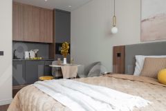 Светлая студия "Медовый дом" с дизайнерским ремонтом для 3-х человек