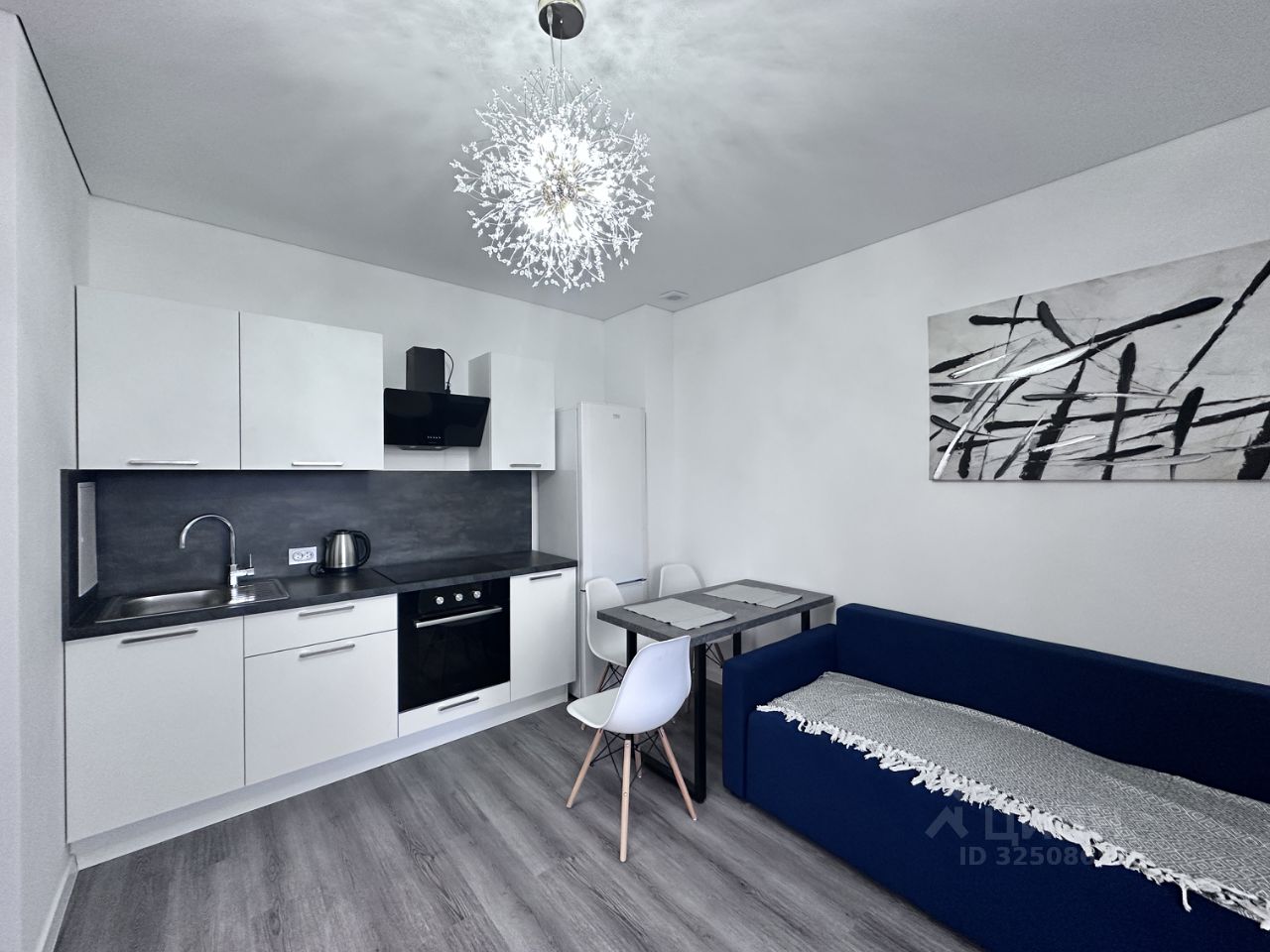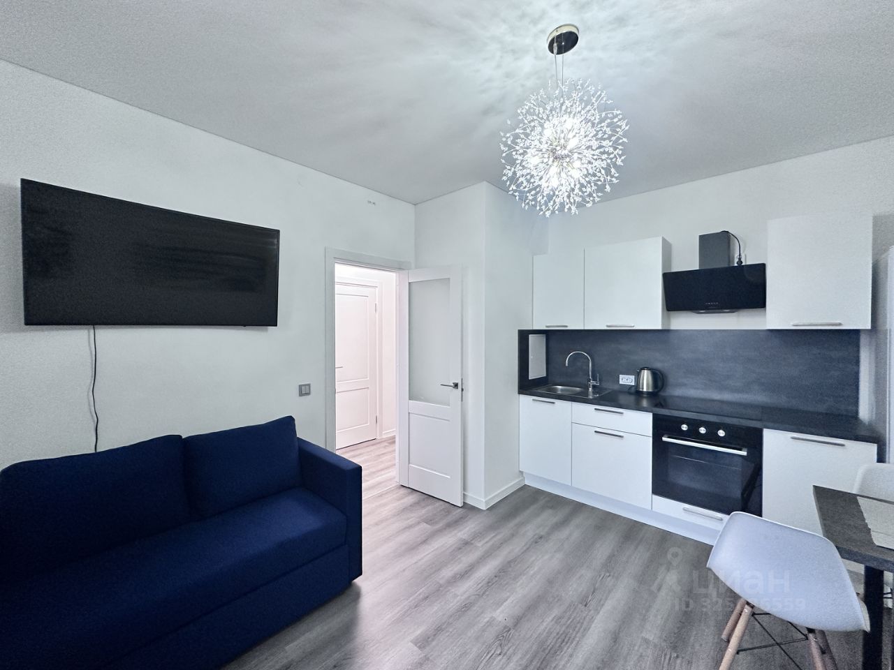 • Полный комплект бытовой техники: холодильник, духовой шкаф, плита, вытяжка, эл. чайник. Телевизор (диагональ 55) со смарт-ТВ Видеодомофон.