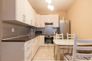 В квартире есть всё необходимое: стиральная машина, телевизор на кухне, холодильник, духовой шкаф, варочная панель, микроволновая печь, электрический чайник, посудомоечная машина.