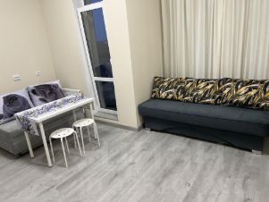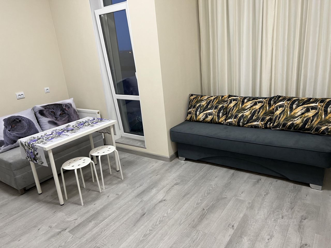 В квартире сделан качественный ремонт, создана приятная и современная атмосфера. Студия полностью меблирована, есть вся необходимая мебель для комфортного проживания. Кухонная зона оборудована холодильником, свч, индукционной плитой. В ванной комнате - душ, стиральная машина. В квартире застекленная лоджия.