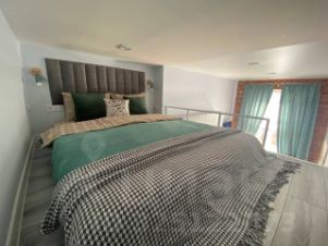 Квартира состоит из двух ярусов: на первом располагается прихожая, ванная комната с душевой кабиной, стильная гостиная зона с удобной кухней, а на втором - просторная двуспальная кровать для спокойного отдыха. Есть вся необходимая техника.