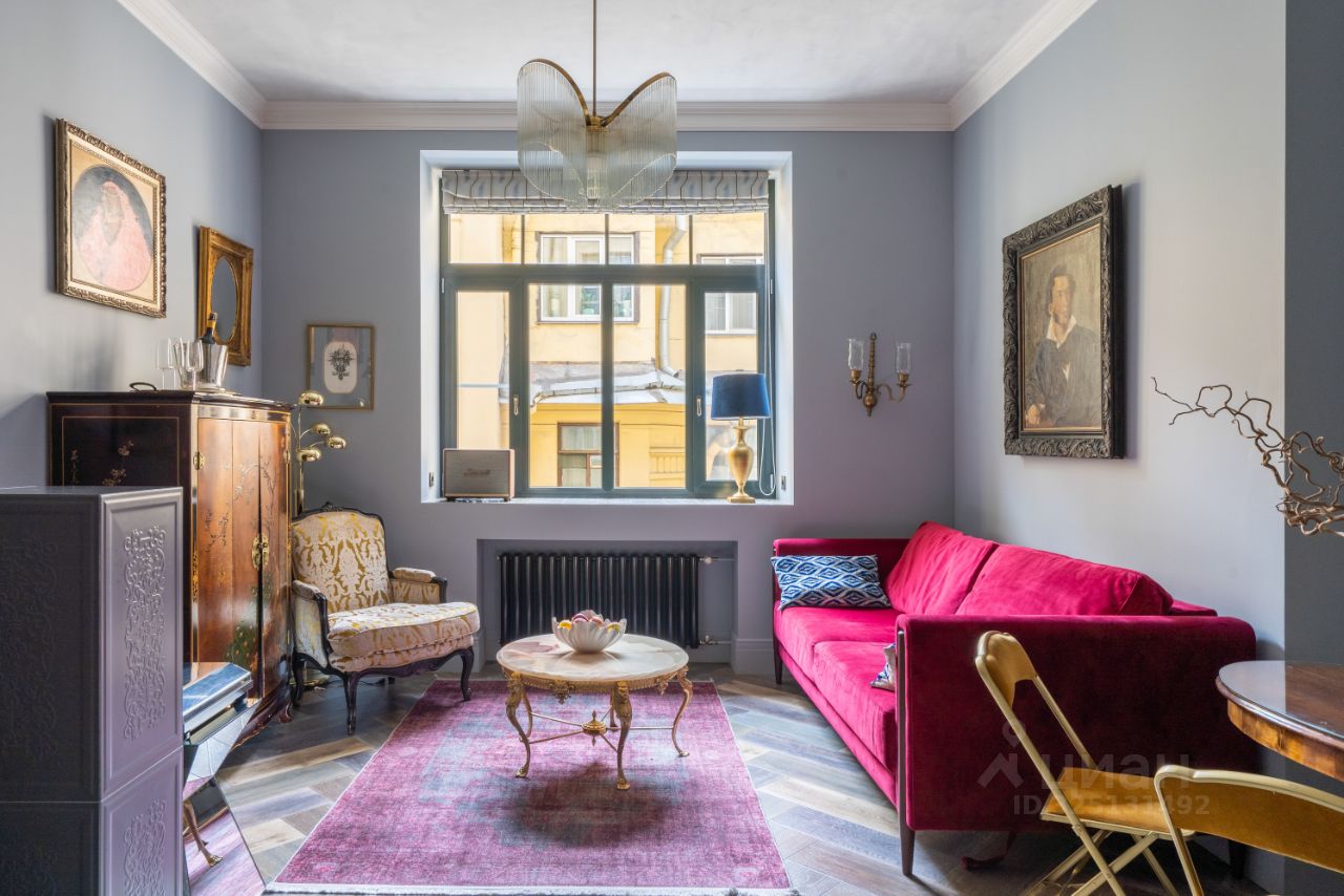 Апартаменты гостиничного уровня с особой атмосферой гедонизма дореволюционного Петербурга XVIII века. Квартира подойдет для любителей тонкой эстетики, истории и культуры, а также коллекционеров эмоциональных впечатлений. Пространство наполнено винтажными и антикварными предметами мебели и искусством из разных стран и эпох: вековая картина, украшавшая Большой театр, обои Уильяма Морриса, живопись и скульптуры, мебель стилей шинуазри, ампир, рококо и эпохи Наполеона III, виниловый проигрыватель, винтажная посуда для сервировок.