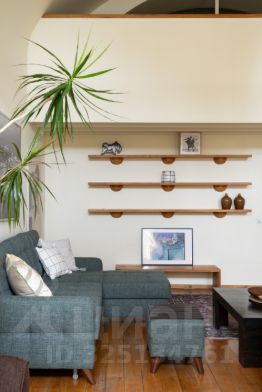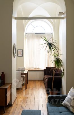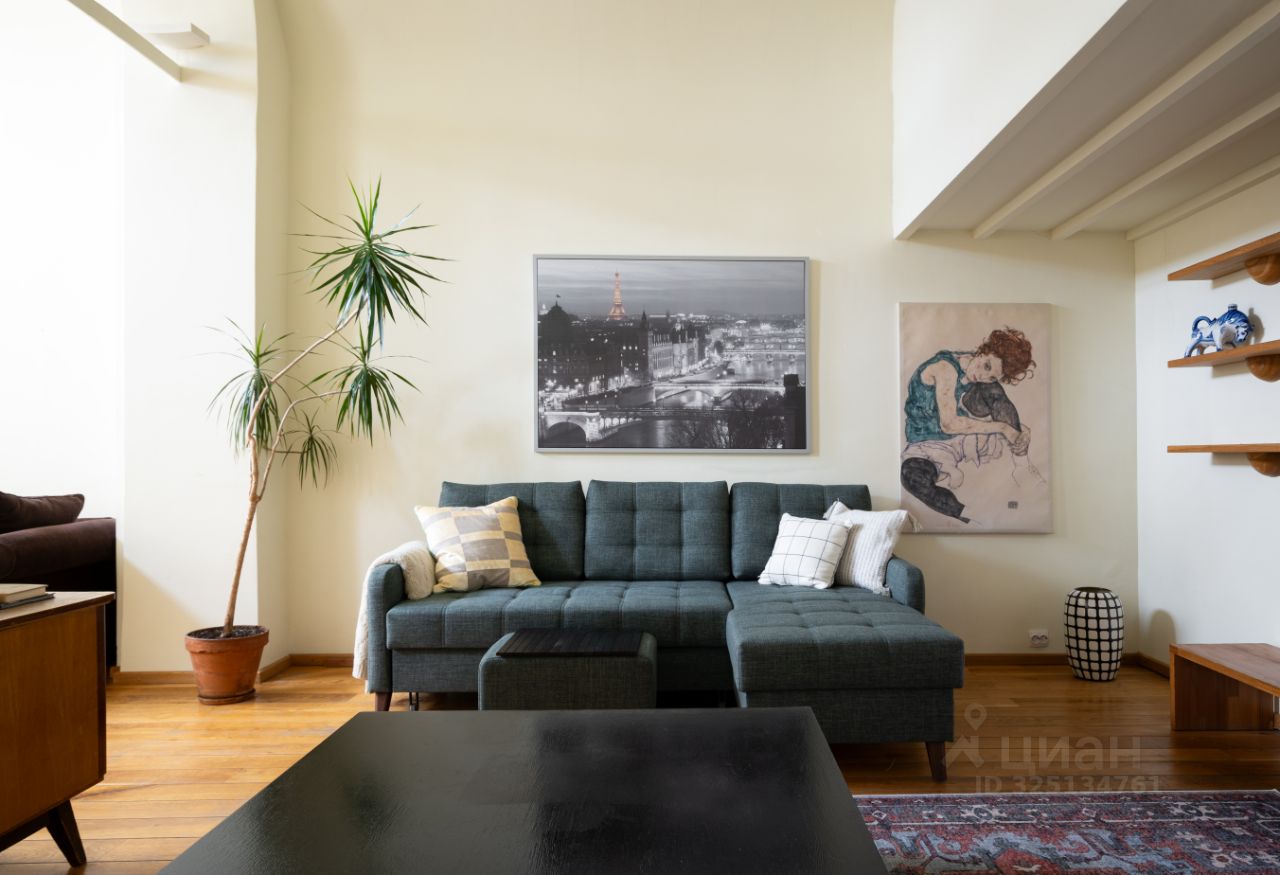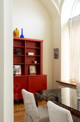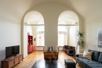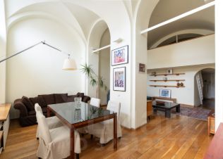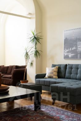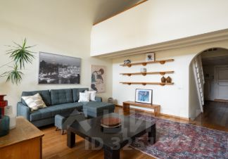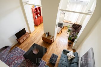 В квартире со сводчатыми потолками просторная гостиная с обеденным столом и двумя диванами, мастер-спальня на втором уровне и отдельная кухня. Квартира оснащена бесключевым доступом, поэтому возможен заезд в любое время после 15:00.