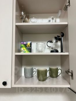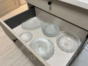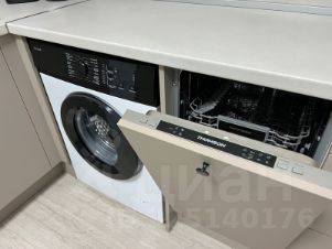 Кухня: Всё для готовки и быта: посудомоечная и стиральная машины, компактный холодильник, электроплита, микроволновка, чайник с терморегулятором и полный набор посуды.