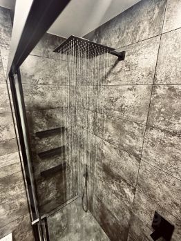 - пол выполнен единым контуром. Материал - плитка;