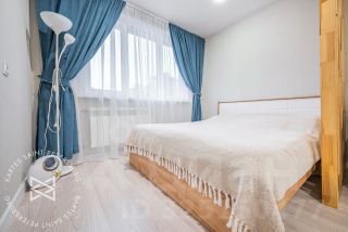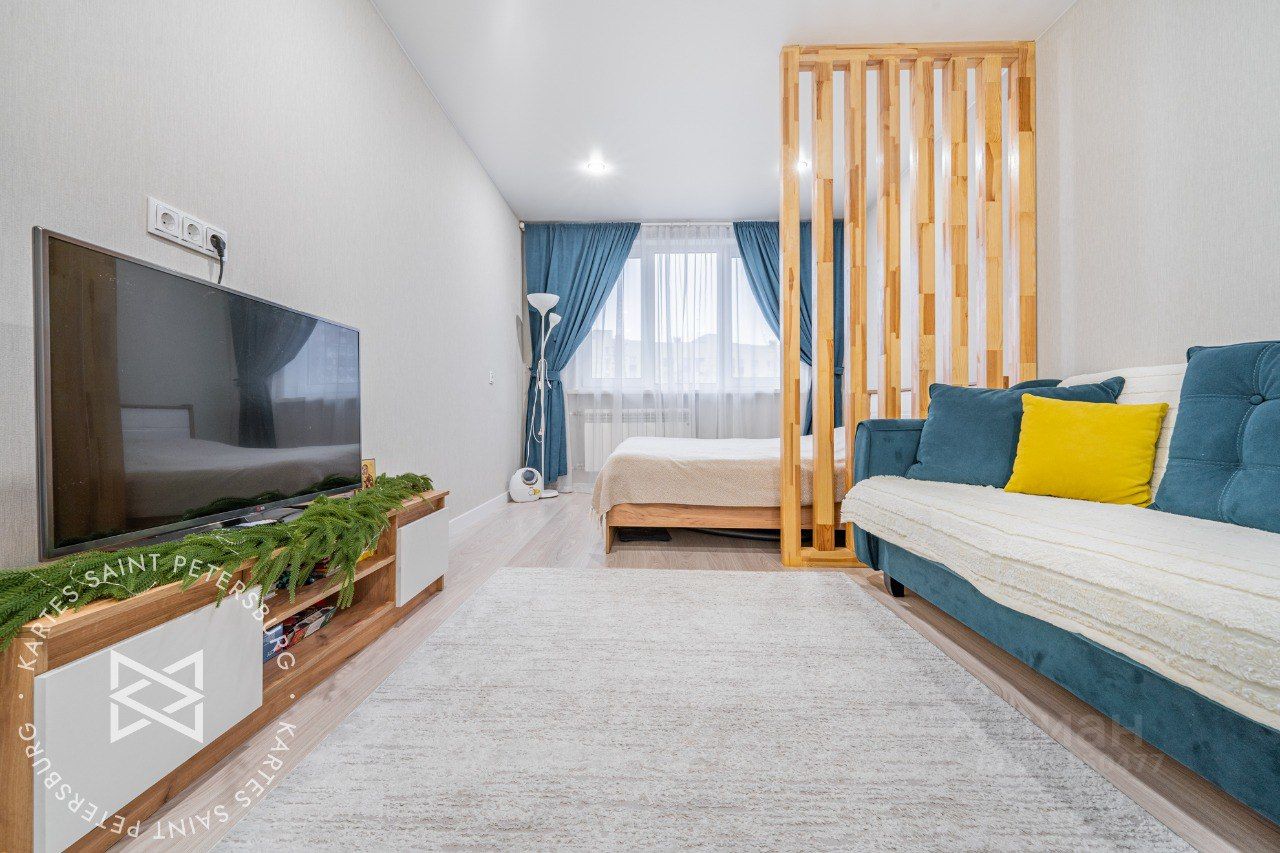 Удобная планировка с большой комнатой, зонированной на спальню и гостиную