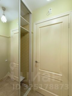 В прихожей в зоне тамбура - встроенный шкаф с зеркальными дверями.