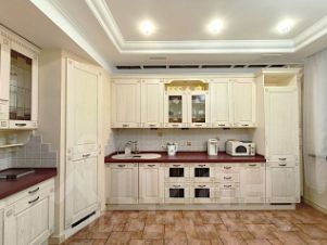 Кухня (15,6 м.кв.) и гостиная 29,1 м.кв.) смежные, есть разделительная стена - при этом два помещения представляют собой единое пространство с выходом на балкон-террасу.