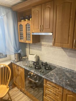 В квартире сделан евроремонт. Она полностью меблирована: мебель есть как на кухне, так и в комнатах. Вас порадует наличие всей необходимой бытовой техники: холодильник, телевизор и стиральная машина. Ванная комната оборудована душевой кабиной. Из окон открывается вид как на улицу, так и во двор, а также есть одна лоджия для отдыха на свежем воздухе.