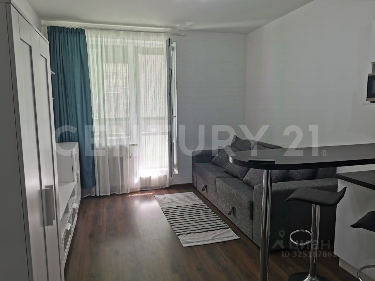 Сдам уютную квартиру-студию площадью 24,1 кв.м, расположенную на комфортном 4 этаже кирпично-монолитного дома. Квартира находится в ЖК "Гринландия 2", застройщик "Сетл Сити". В квартире сделан качественный ремонт. Имеется застекленная лоджия. Квартира меблирована, есть все необходимое для комфортного проживания. Зона кухни оснащена встроенным кухонным гарнитуром, холодильником, электрической плитой с духовым шкафом. Есть раскладывающийся двухместный диван, стенка, комод, шкаф для одежды. В ванной комнате установлена стиральная машина.