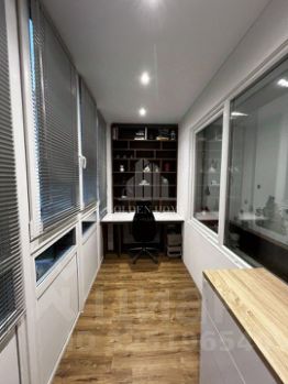В квартире застекленная лоджия, с очень продуманным и удобным рабочим местом. В квартире установлен теплый пол в лоджии, ванной комнате, а также в кухне-гостиной.