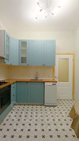 - 9м2 кухня, оснащённая всем необходимым, в том числе есть посудомоечная машина, газовая плита и электрическая духовка;