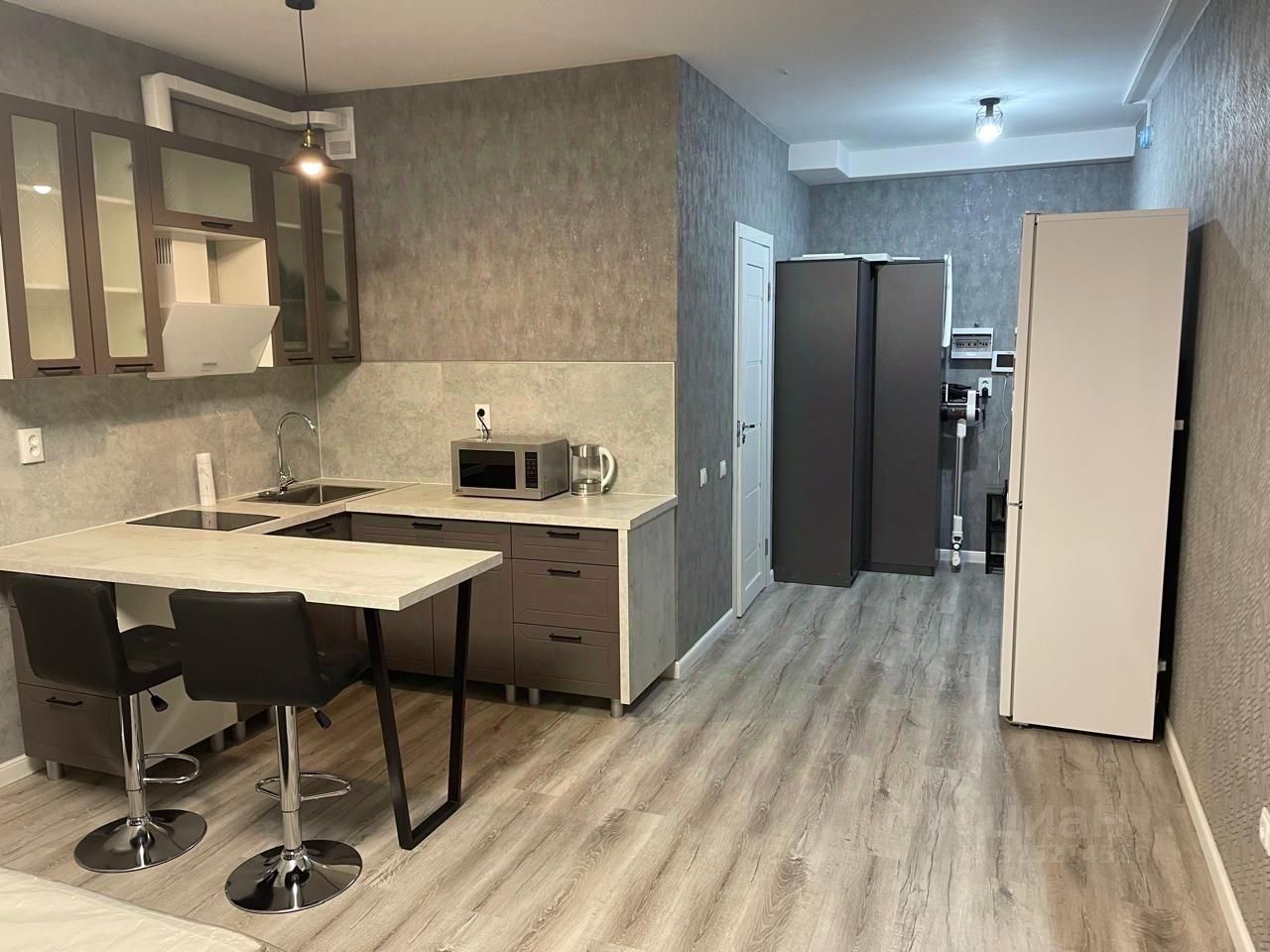Сдаётся в аренду уютная студия в новом доме 2023 года постройки. Квартира расположена на 3 этаже 21-этажного монолитного здания. Общая площадь квартиры составляет 32.25 квадратных метров, из которых 28.59 квадратных метров — жилая площадь. Высота потолков — 2.75 метра, что создаёт ощущение простора. Окна выходят во двор, обеспечивая тишину и уединение.