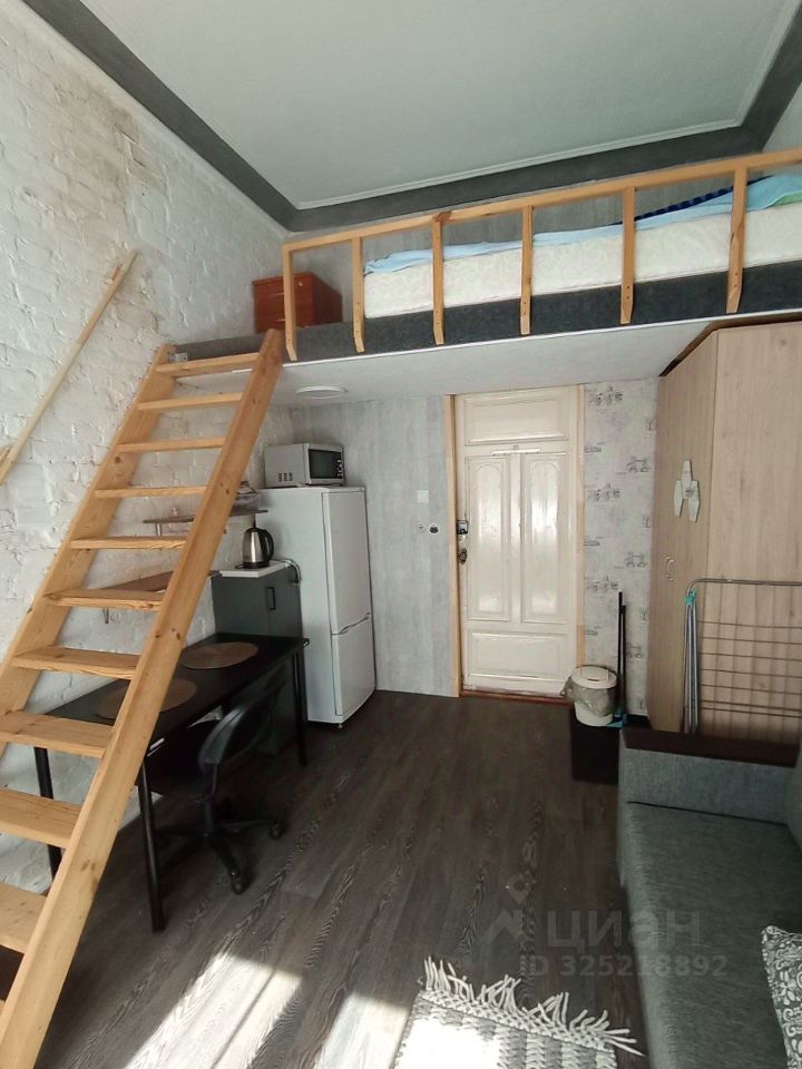Высота потолков составляет 3,72 метра. На втором ярусе обустроено уютное спальное место, что позволяет спокойно разместиться в комнате двум людям (родитель с ребёнком или семейная пара).