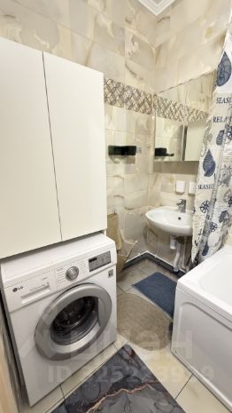В квартире: прихожая-купэ, шкаф, комод и стеллаж для вещей, сушилка, кровать с матрасом Askona, диван-кровать, полностью собранная кухня с электроплитой, микроволновка, чайник, холодильник, посудомойка, стол со стульями, в ванной установлена стиральная машина с шкафом, зеркальный шкафчик над раковиной.