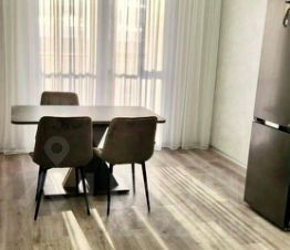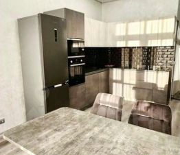 Стильная кухня с обеденной и рабочей зоной оборудованной всей необходимой техникой(холодильник, варочная панель, духовой шкаф, посудомоечная машина, микроволновка, эл. чайник и пр. ), посудой и мебелью. В квартире достаточно мест для хранения, есть отдельная гардеробная комната. Установлен кондиционер и теплые полы.