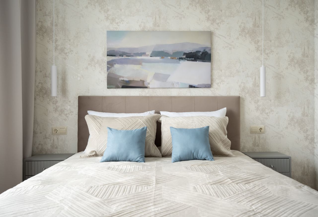 Двухкомнатная квартира с просторной кухней-гостиной, спальной и кабинетом с диваном. Квартира оснащена бесключевым доступом, поэтому возможен заезд в любое время дня после 15:00.
