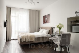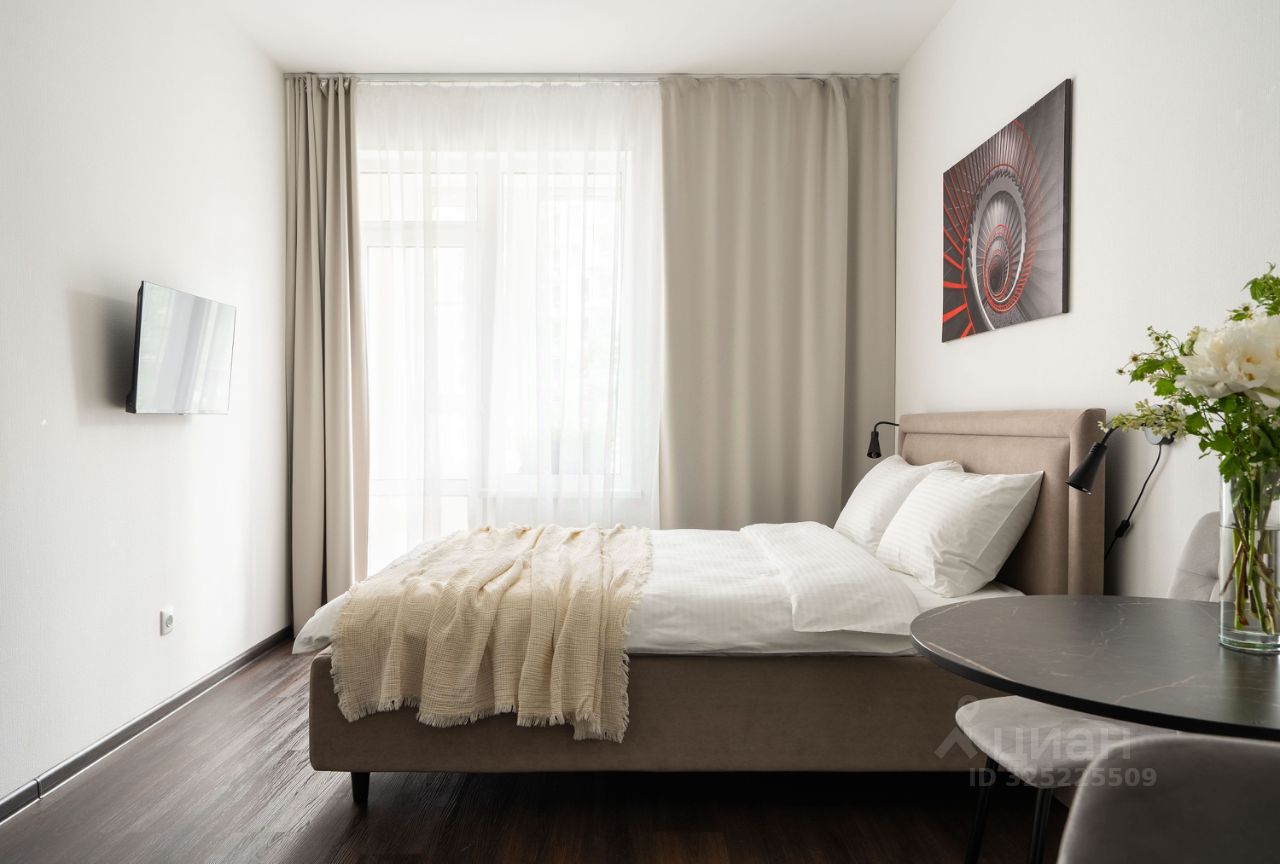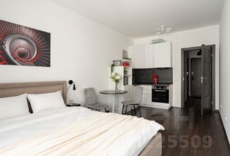 Квартира-студия с просторной кухней. Объект оснащен бесключевым доступом, поэтому возможен заезд в любое время после 15:00.