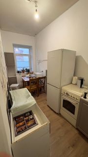 Кухня: газовая плита, электрическая плита (по запросу), холодильник, СВЧ, посудомоечная машина, кухонный гарнитур, стол и стулья Икеа.