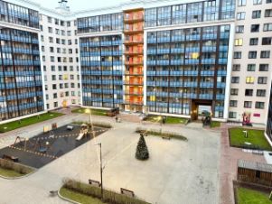 Окно квартиры выходят во двор, что невероятно удобно при расположение дома на пересечение двух оживлённых улиц. В доме есть фитнес, вкусный ресторан, кофейня, коворкинг, Ozon, WB, Яндекс маркет и многое другое.