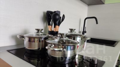 Кухня оборудована всем необходимым: холодильник, микроволновая печь, плита, чайник, кофеварка, а также посуда, приборы.