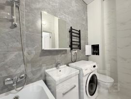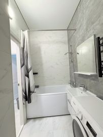 Санузел совмещенный с ванной, подключена новая стиральная машина.
