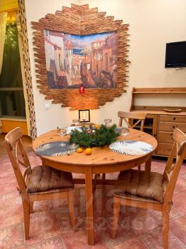 •Кухня-гостиная: Огромный раздвижной стол для семейных ужинов или работы. Есть ПОСУДОМОЙКА (отдыхайте, а не трите тарелки!), плита с духовкой, холодильник и полный арсенал посуды. Для отдыха: раскладной диван и ТВ.