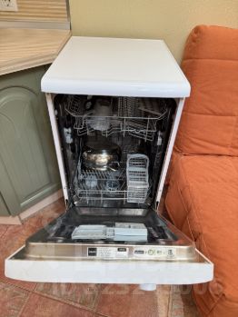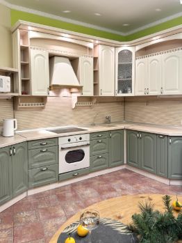 •Кухня-гостиная: Просторная зона с большим обеденным столом (раскладывается). Укомплектована техникой от и до: посудомоечная машина, духовка, микроволновка, большой холодильник. Есть раскладной диван-кровать и TV.