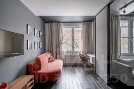 В квартире выполнен качественный дизайнерский ремонт, предусмотрена функциональная планировка: спальня разделена на уютную зону отдыха и удобное рабочее пространство с диваном.