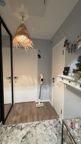 В квартире есть всё необходимое для комфортного проживания: современная мебель на кухне и в комнате, а также техника — холодильник, телевизор и стиральная машина. Высота потолков — 2.67 метра, что добавляет ощущение простора. В доме есть пассажирский и грузовой лифты, поэтому передвижение будет удобным.